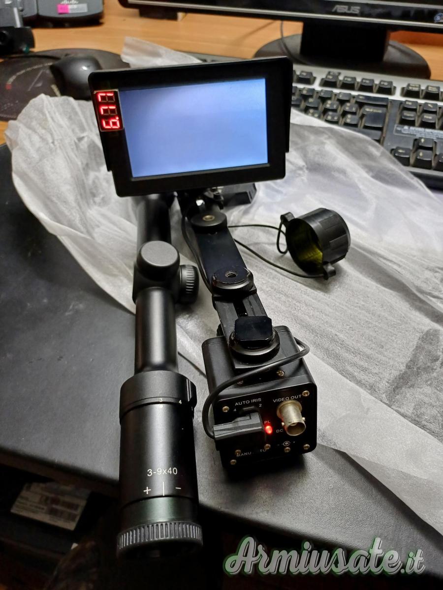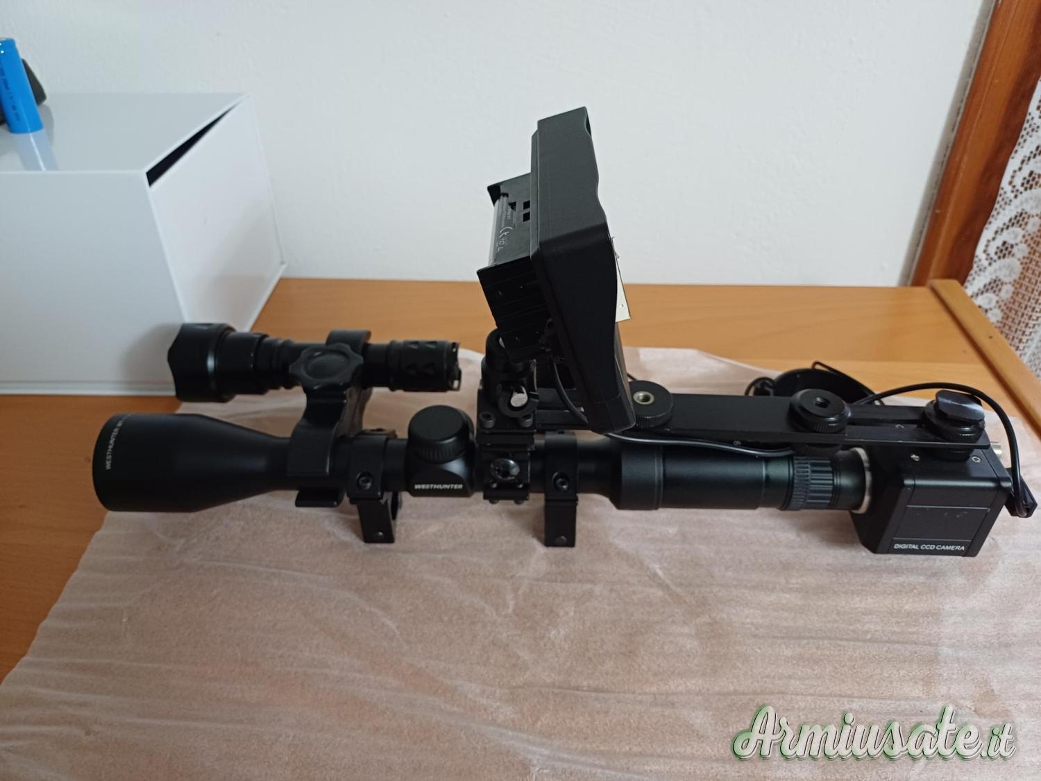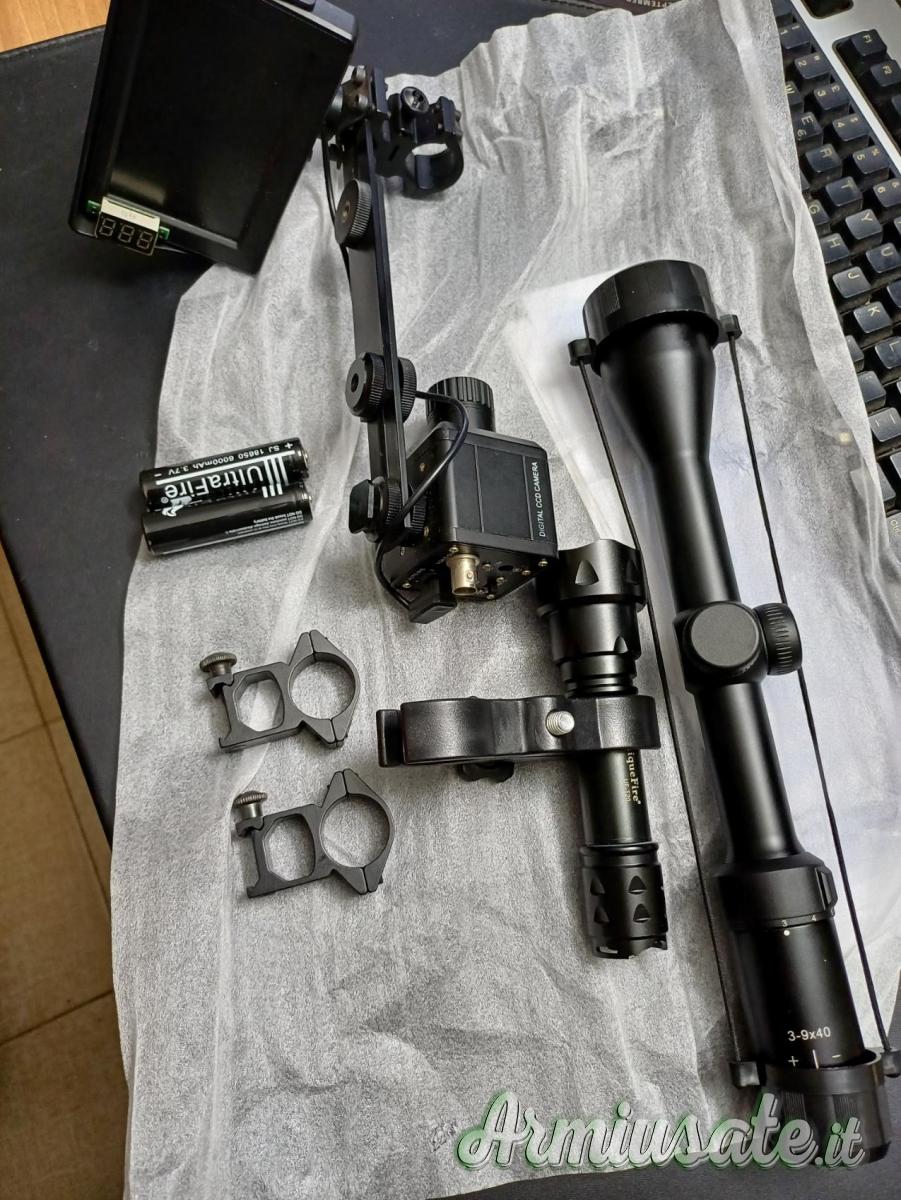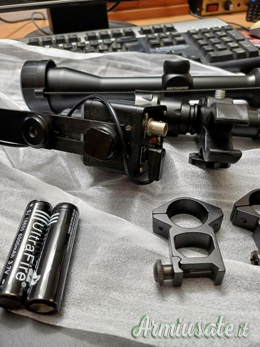 Visore notturno kit completo di ottica, attacchi, torcia, batterie e carica batterie