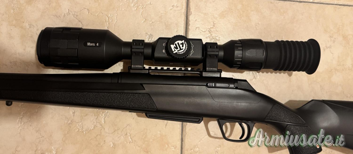confezione come nuovo Incluso : Ottica, istruzioni, cavo ricarica, anelli per montaggio weaver, panno pulizia, custodia in neoprene, oculare staccabile in gomma.