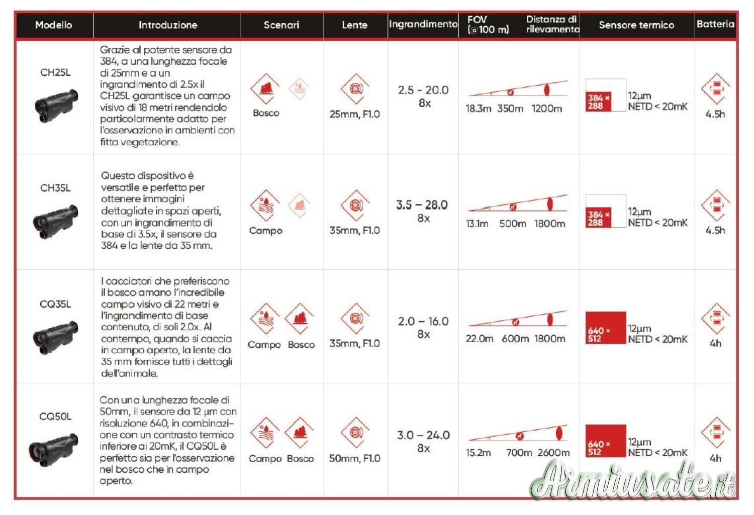 Con una lunghezza focale di 50 mm, in combinazione con il passo dei pixel di 12 μm e il grande rilevatore 640, oltre alla sensibilità termica inferiore a 20mK, il CQ50L con un LRF di 1000m garantisce notevoli vantaggi ai cacciatori sia in campo aperto che nelle aree boschive.