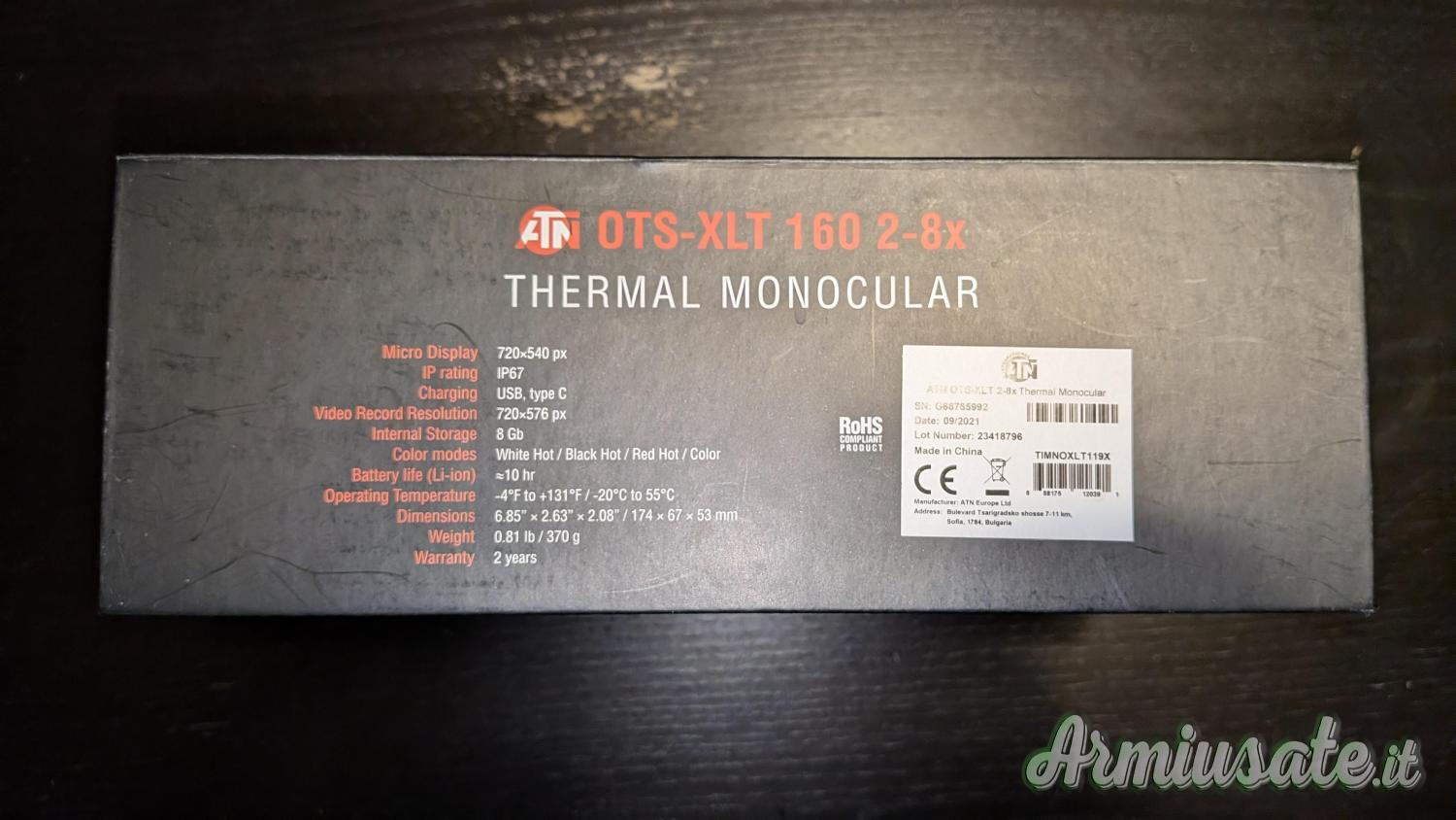 Vendo visore notturno termico ATN OTS-XLT 160 2-8x in perfette condizioni, completo di tutti gli accessori originali, ovvero confezione, custodia, cavo per la ricarica, panno per la pulizia delle lenti, cordino da polso, istruzioni in italiano ed inglese..