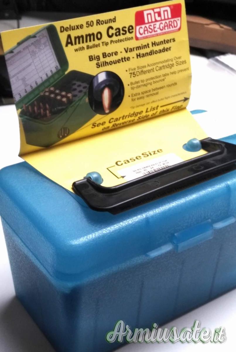 Scatola portacolpi originale Casegard MTM H50 RL, per calibri tipo 30-06 (vedi tabelle), capacita' 50 colpi, con maniglia e portacolpi interno rimuovibile