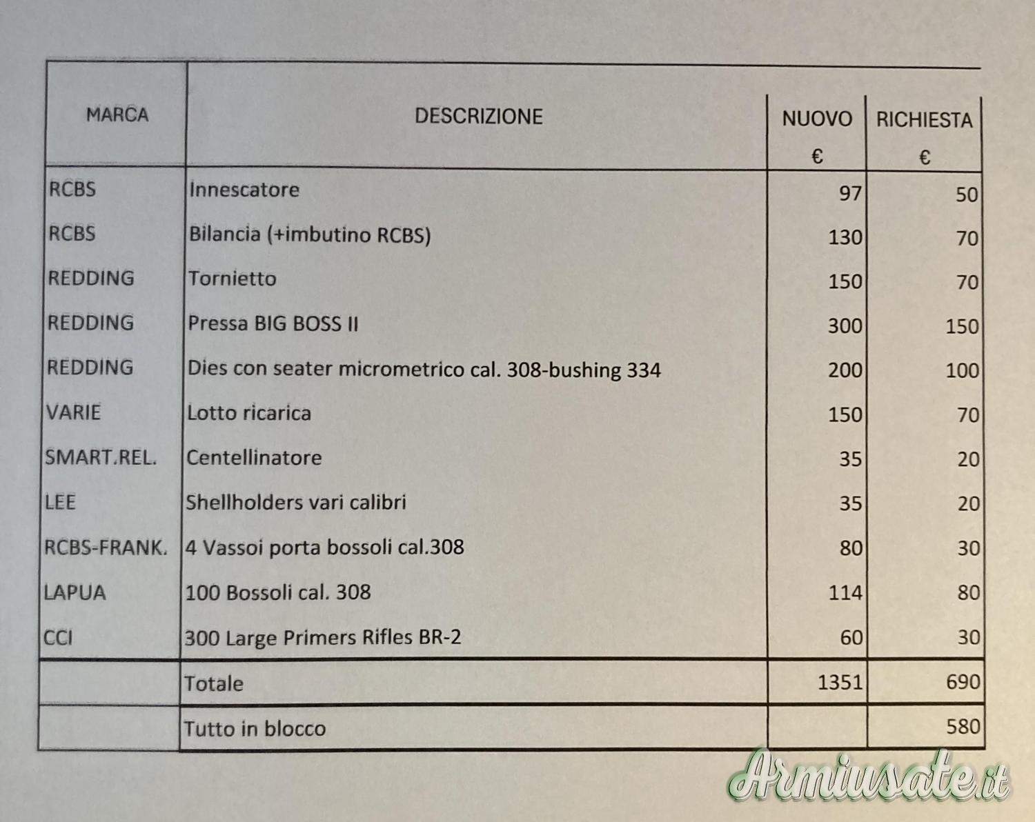 Arrotondando a € 600 aggiungo bossoli usati (2 ricariche) 130 Lapua e 200 Fiocchi con scatole portacolpi.