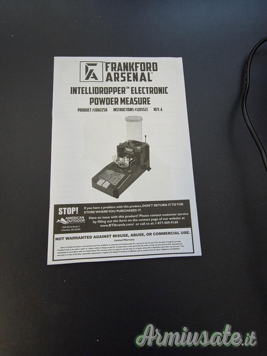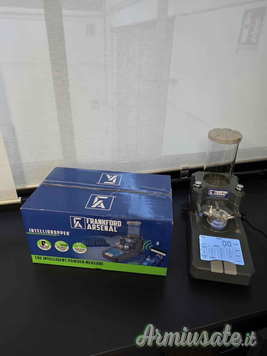 Frankford Arsenal intellidropper è un dosatore innovativo e di nuova generazione. È dotato di un pulsante di calibrazione individuale per il dosaggio e la misurazione veloce della polvere. L'ampio display LCD retroilluminato consente controlli facili e perfetti per qualsiasi utente. Il dosatore memorizza i dati di caricamento nell'APP per smartphone o tablet. Capacità di drenaggio automatica e manuale con fino a 200 grani di polvere. Contiene fino a 7.000gr / 450g / 1lb di polvere e offre una precisione di +/- 0,1gr