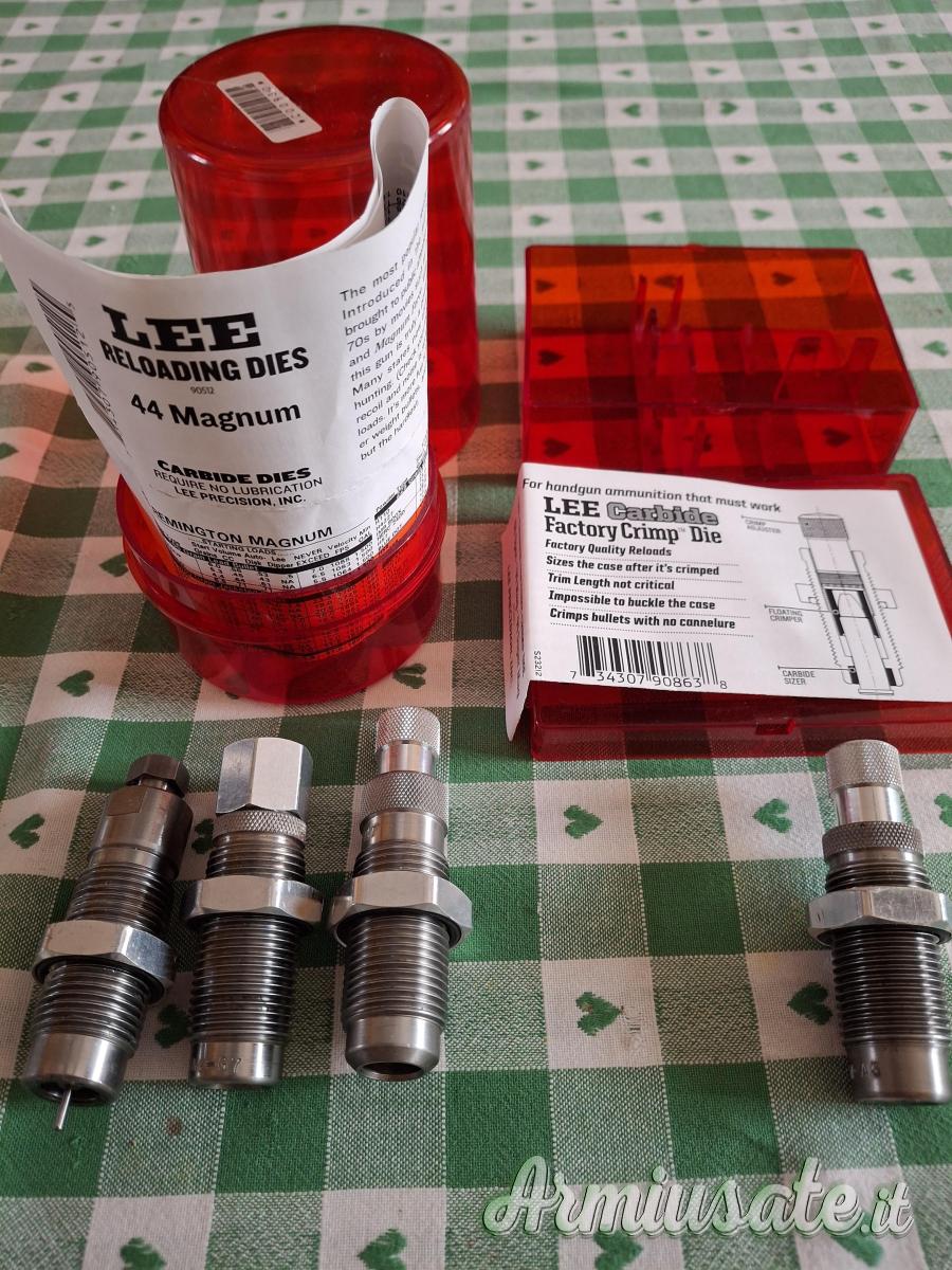 Cedo carbide dies Lee 44 magnum mai usati compreso factory crimp e shell holder. Chiedo 50 euro spedizione compresa.