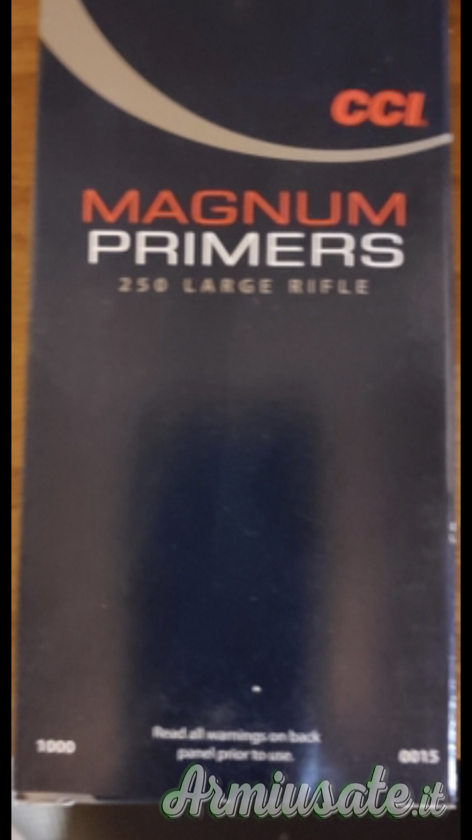 Vendo per inutilizzo una scatola da 1000 inneschi CCI 250 LRM. Non trattabile.