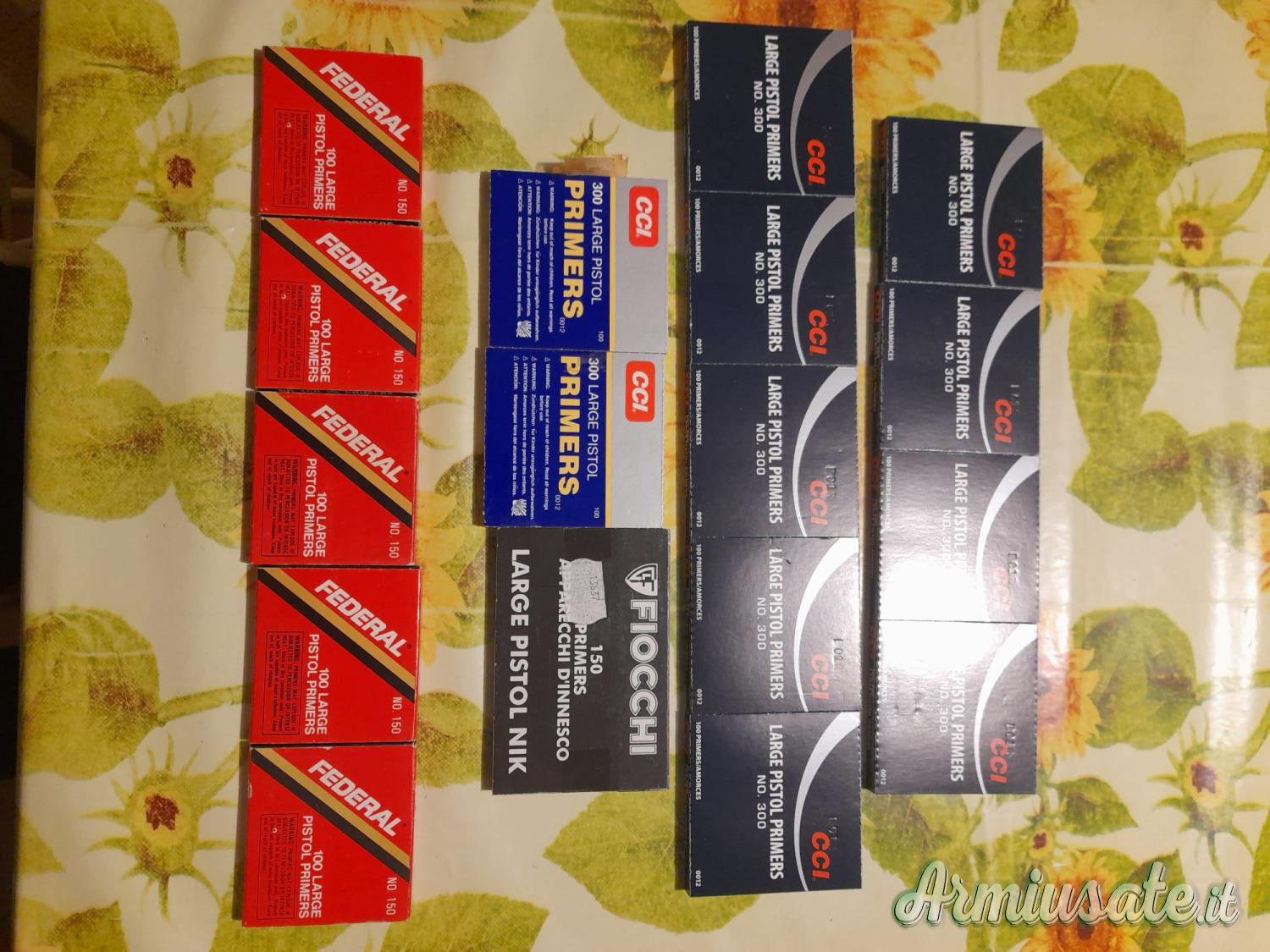 Cedo per conto di un amico circa 1700 inneschi larg pistol tra cui Cci Federal fiocchi chi fosse interessato mi contatti pure al numero di telefono 3202142932 o su wathsapp non rispondo ad altro grazie