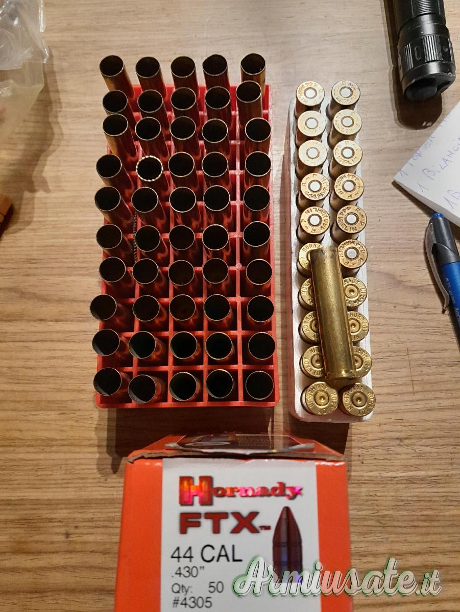 Vendo per cessato interesse n.61 Bossoli x 444 Marlin 1° Sparo Lunghi x Express e Corti x Leva,11 sono innescati,+ una scatola da 50pz di Palle Hornady FTX da 265gr. Euro 115 compresa spedizione. Daniele 3665423351