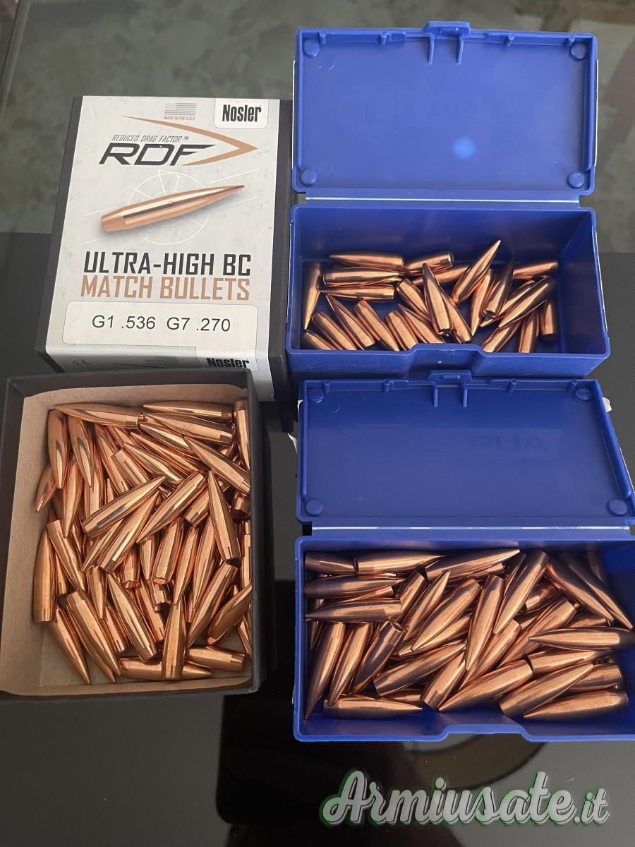 Cedo in blocco come da foto 62 ogive Nosler RDF 175 gn 25 ogive 170 gn lapua look base e 63 ogive da 175 gn che usavo come sporca canna più 166 inneschi large rifle murom competition pacco di feltrino me mancheranno una decina e arnesi per la misurazione della spalla cedo per inutilizzo l'anvil base è ancora chiusa vedesi sopra il prezzo 23 € cedo in blocco a111 € spedito