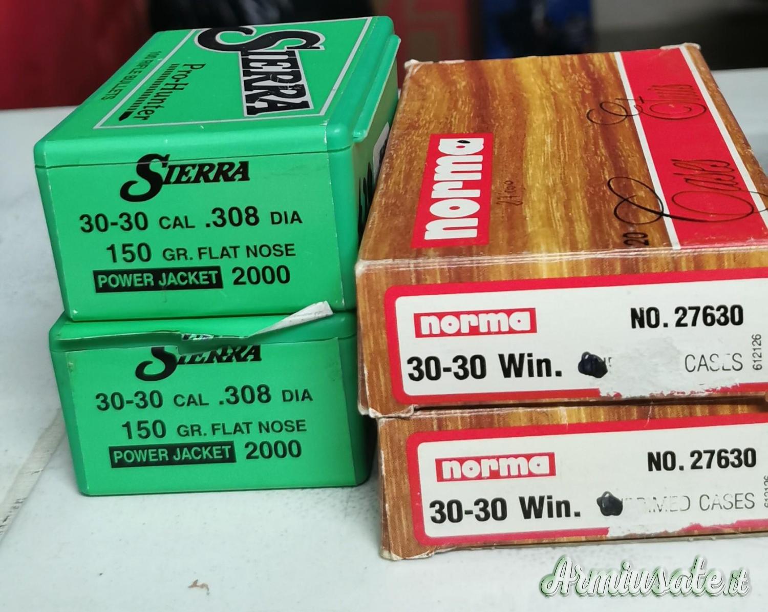 Cedesi palle della sierra cal.30-30 150gn Flat nose. Regalo i bossoli presenti in foto. Per il prezzo contattatami.