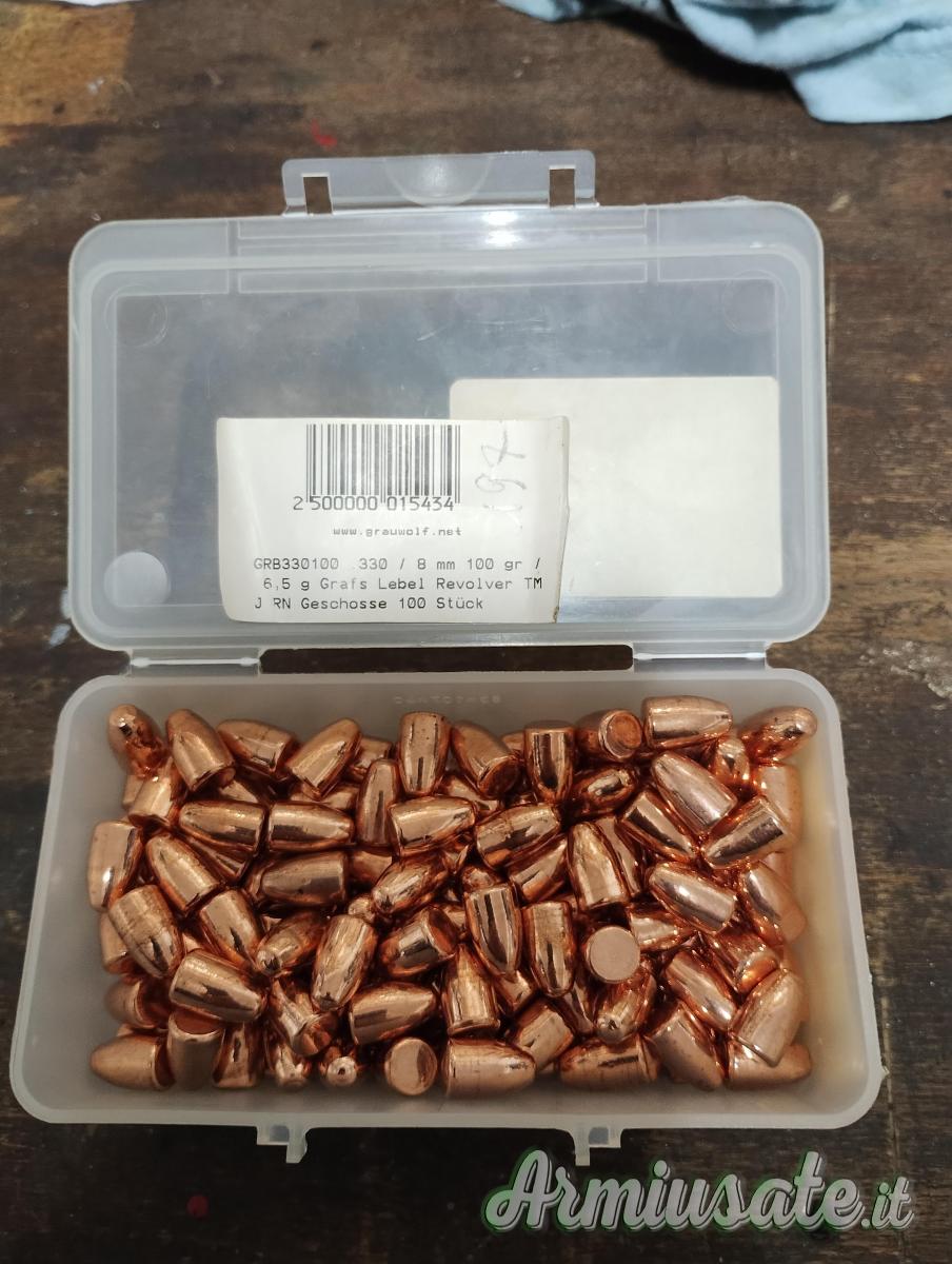 197 palle ramate diametro 0,330 millesimi di pollice, peso 100 grani, marca Graf. Specifiche per revolver Lebel ma utilizzabili per tiro ridotto per calibri 8x50 R e 8x56 R