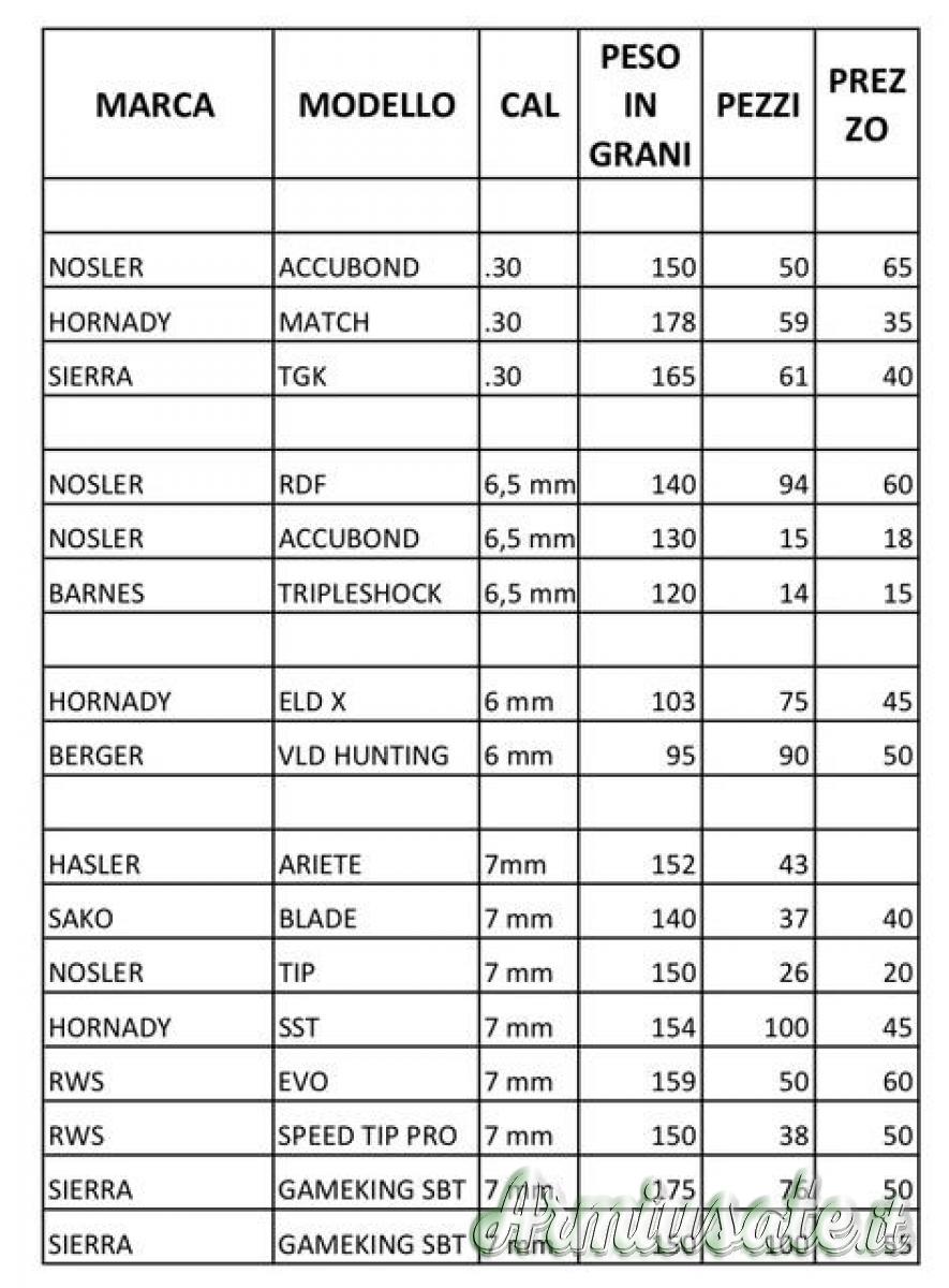 Vendo varie palle Hornady, Hasler, Sako, Nosler, Berger, Barnes, Rws, Sierra.