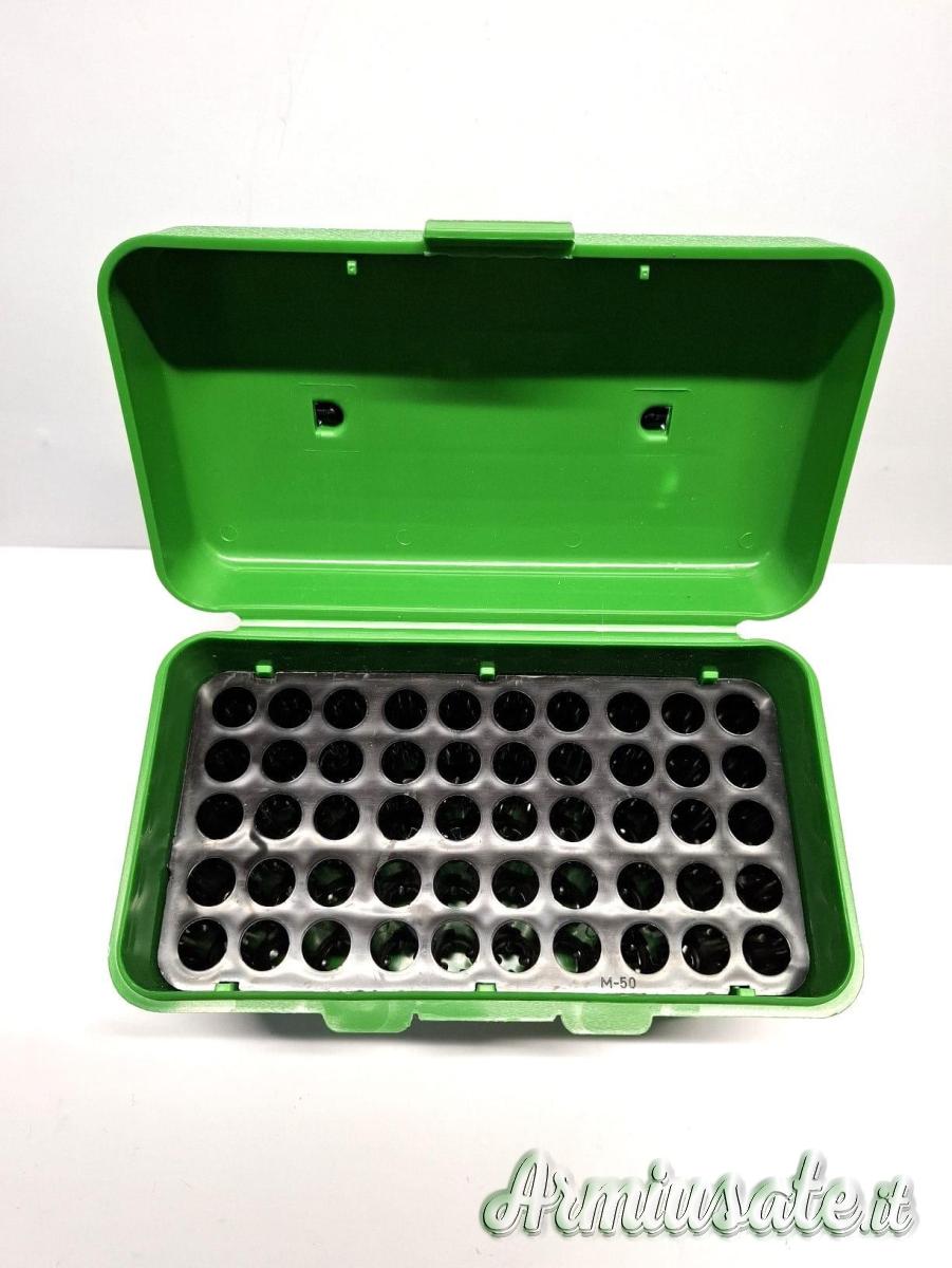 Scatola portamunizioni con maniglia da 50 MUNIZIONI Calibri: 22BR, 22 Cheetah, 22 PPC, 220 Rus., 220 Swift, 22-250, 224 Wby. Mag., 225 / 243 / 270 / 307 / 308 Win., 244 / 25 Rem., 250 Sav., 28-30 Sevens, 30 / 32 / 35 Rem., 300 Sav., 350 Rem. Mag., 360 Nitro Express 2 1/4?, 375 Rimless 2 ¼", 401 Win. S. L., 5.6x52 Rimmed, 6.5 Creedmoor, 6.5x50 Jap Arisaka, 6.5 x 54mm Mann-Schoen., 6.5x55mm Swedish, 6.8mm Rem. Spl., 6mm BR-DX, 600 Norma BR, 6mm PPC USA, 6mm Rem., 6mm-284 Win., 7.5 Carano, 7.5 x 54 French MAS, 7mmTCU, 7.62x39 Rus., 7.65x53 Mauser, 7mm BR, 7mm-08 Rem. Bullet UP Max. OAL= 2.90" Bullet DOWN Max. OAL= 3.75"