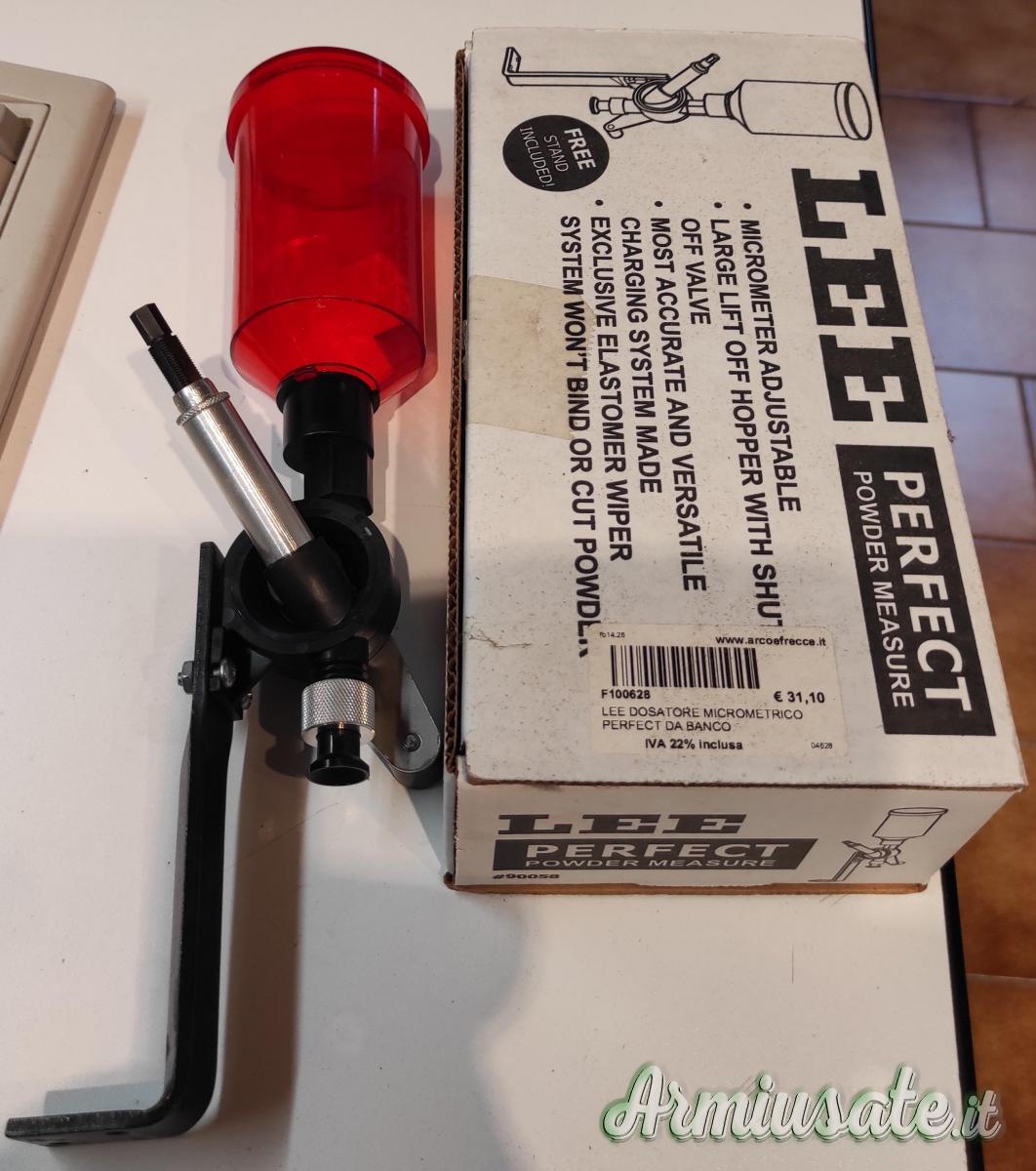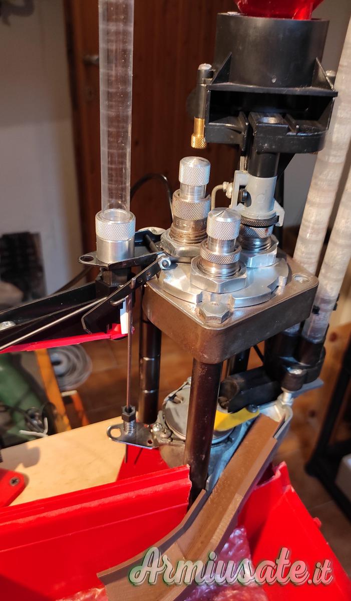 Nelle foto vedete la pressa con il dispenser originale, per il 45acp, modificato per eliminare la fastidiosa catenella.