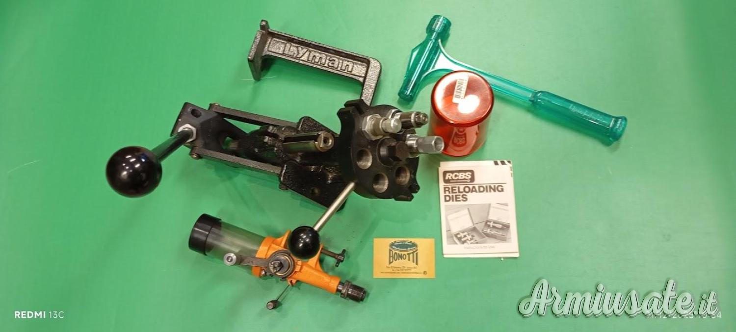 Pressa Lyman completa di ...dosatore, martello e un set da 3 di Dies 9 mm...